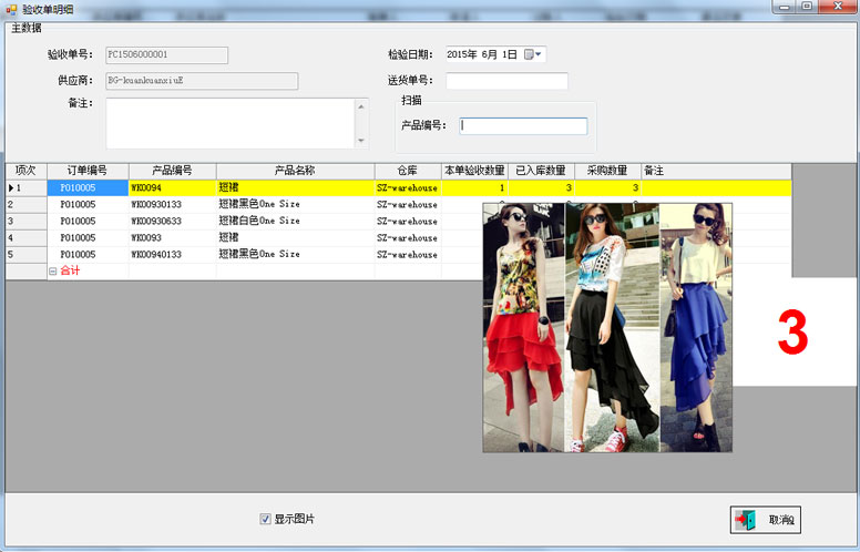 采购单验收入库,一键生成验收单,可多批次验收入库;
